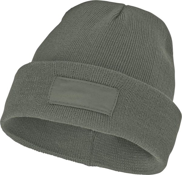 Jednovrstvá čepice s ohrnutým okrajem. 1x1 žebrovaný pletený vzor, ze 100% akrylu. Nášivka ze 100% polyesteru.