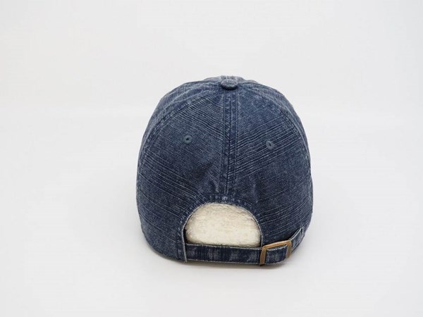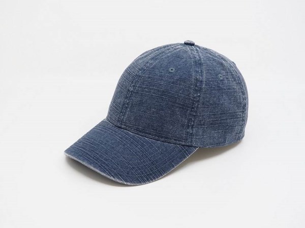 Šestipanelová bavlněná čepice univerzální velikosti v designu seprané džínoviny. Nastavením velikosti pomocí pásku s mosaznou přezkou a drukem, standardní kšilt a obšité vetrací otvory. Čelo této čepice je nevyztužené.