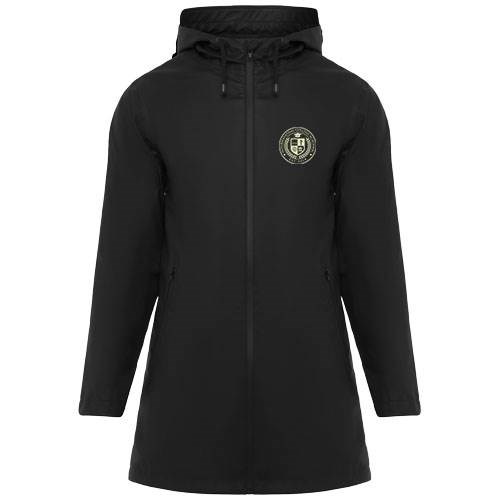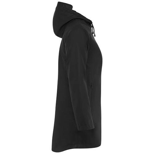 Nepromokavá dámská pláštěnka vyrobená z Polyurethanu ze 100% Polyesteru, gramáže 210 g/m2. Kapuce s kšiltem. Podlepené, zateplené zipy a švy. Kontrastní detaily v černé barvě. Dvě boční kapsy na zip. Rozparky na zadním lemu. Odtrhávací štítek za krkem. Nepromokavá. Individuálně baleno po jednom kuse v sáčku.