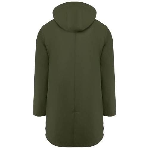 Nepromokavá pánská pláštěnka vyrobená z Polyurethanu ze 100% Polyesteru, gramáže 210 g/m2. Kapuce s kšiltem. Podlepené, zateplené zipy a švy. Kontrastní detaily v černé barvě. Dvě boční kapsy na zip. Rozparky na zadním lemu. Odtrhávací štítek za krkem. Nepromokavá. Individuálně baleno po jednom kuse v sáčku.