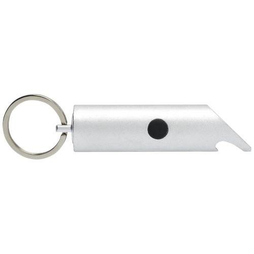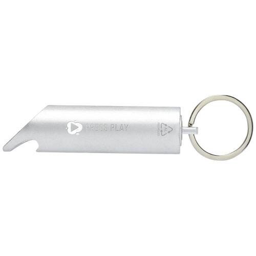 Jasná LED klíčenka s otvírákem na láhve, tlačítkem pro zapnutí/vypnutí a železným kroužkem na klíče. Je vyrobeno z lehkého a pevného 63% RCS certifikovaného recyklovaného hliníku. Standard Recycled Claim Standard (RCS) ověřuje recyklovaný obsah produktu v celém dodavatelském řetězci. K dispozici v různých výrazných barvách s kovovým povrchem, díky nimž tištěné logo krásně vynikne. Dodává se se třemi bateriemi LR44. V ceně zboží je zahrnut recyklační příspěvek na likvidaci elektroodpadů ve výši 0,84 Kč.