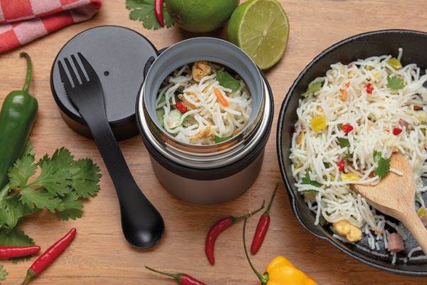 Vychutnávejte si přirozenou chuť potravin bez nepříjemných pachutí kovu. Termo nádoba s vnitřním opláštěním z keramiky promění vaše svačinky v požitek. Díky vakuové izolaci potraviny uchová až 5 hodin horké a 15h studené. Nepropustná. Včetně all-in-one příboru (vidlička/nůž/lžička). Objem: 400ml. Obvykle baleno jednotlivě v sáčku a potištěné krabičce.