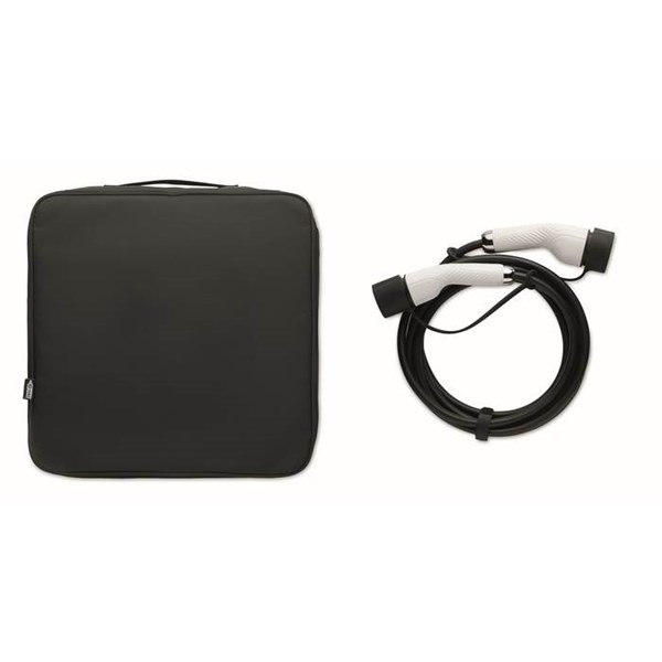 Odolná polstrovaná taška na uložení nabíjecího kabelu pro elektromobily. Vyrobeno z recyklovaného PET plastu s vnitřními přihrádkami ze síťoviny.