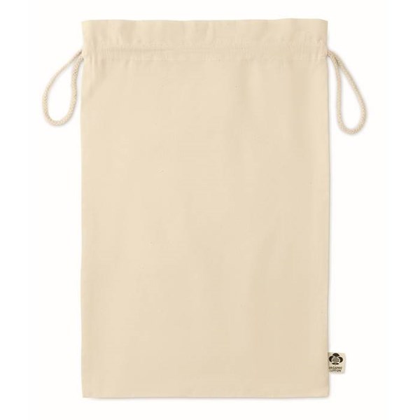 Velký dárkový sáček se stahovací šňůrkou z organické bavlny. Velikost cca 30 x 47 cm. 105 gr/m².
