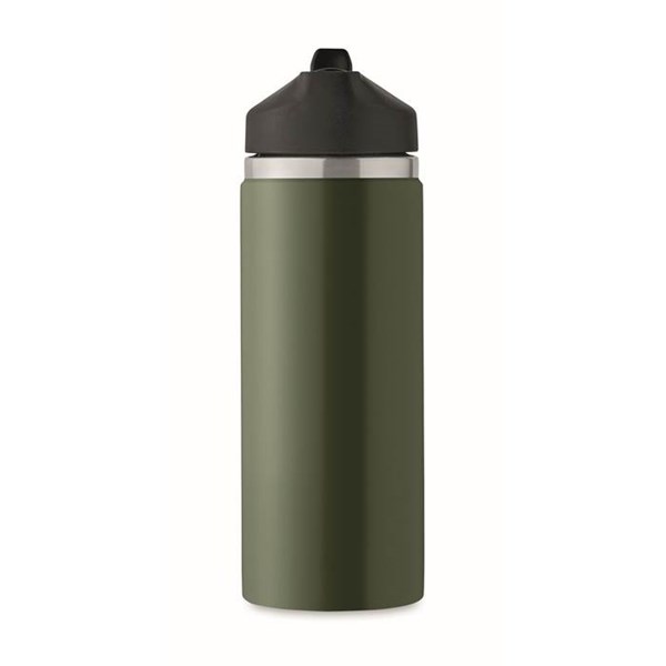 Dvoustěnná láhev z recyklované nerezové oceli (90 % recyklovaná nerezová ocel a 10 % nerezová ocel). Víčko z PP, s úchytem a integrovaným brčkem. Objem: 500 ml.