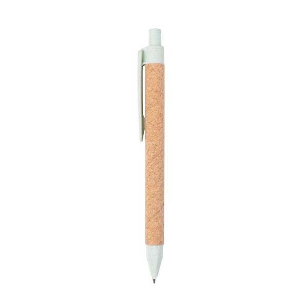 Kuličkové ekologické pero z recyklovaného materiálu – kombinace pšeničné slámy a korku. S modrým německým inkoustem pro až 1200m textu. TC kulička pro mimořádně příjemné psaní.
